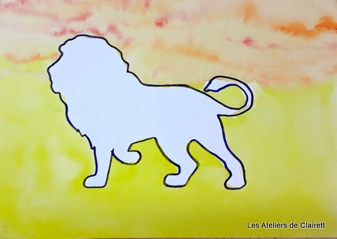Puis nous sommes passés à la pratique avec la réalisation d’un tableau d’un animaux avec un fond en lavis polychrome + retrait eau + ajout couleur.