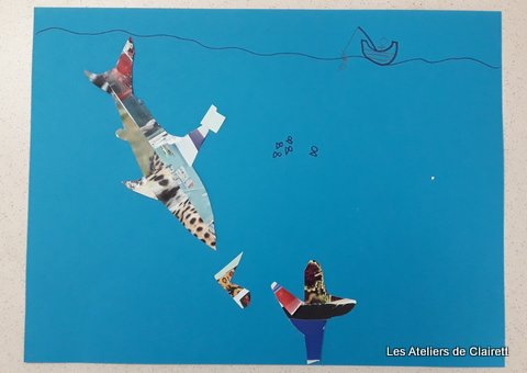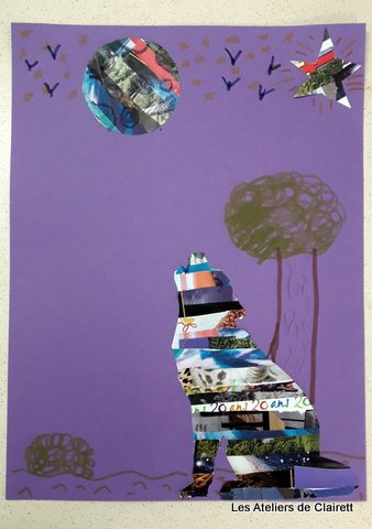 puis les animaux sont mis sur la feuille et couleur et chaque participant à construit son univers au gré de ses envies.