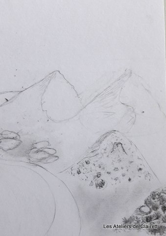 Dessiner des paysages, mais des paysages construits avec une perspective, différents plans, une cohérence générale…pas facile!