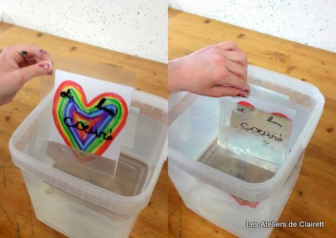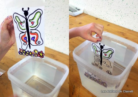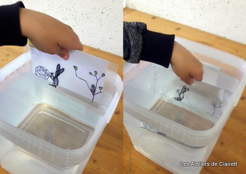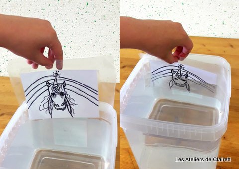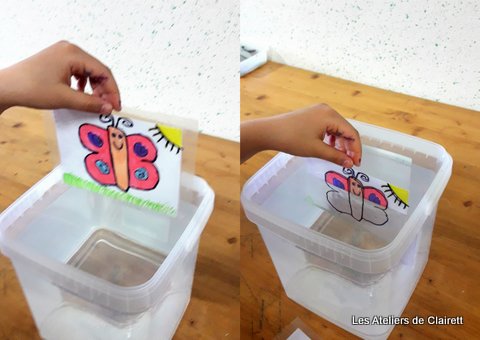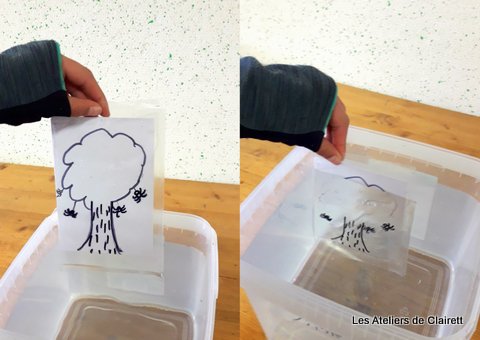 Aujourd’hui, nous avons fait de l’optique et réalisé des dessins magiques qui disparaissent quand on le plonge dans l’eau. Oui sous certaines conditions, car il faut se mettre en réflexion totale.
