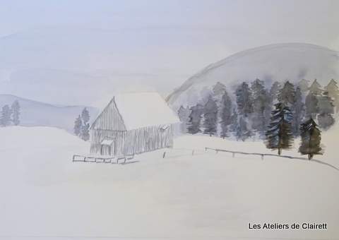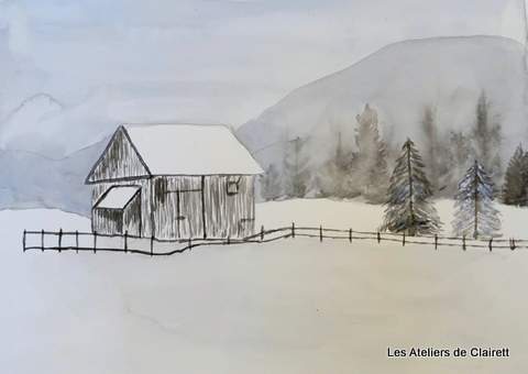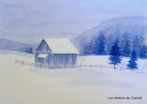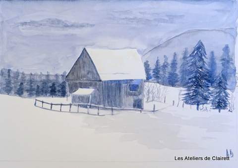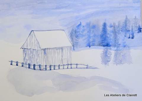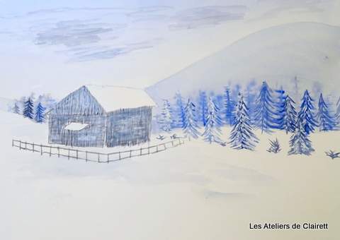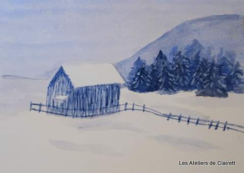 Stage de peinture aquarelle réalisé pendant les vacances d’hivers. (février 2020) sur le thème : paysage hivernal à l’aquarelle (projet 1)